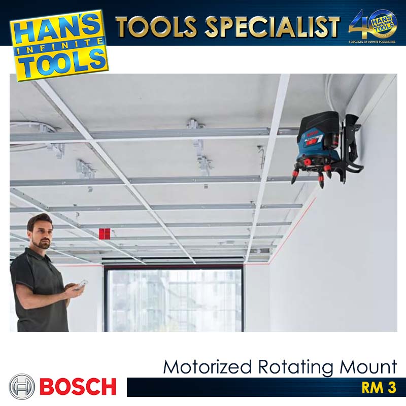 Motorized multifunctional mount for aligning the laser lines and for versatile mounting of the tool