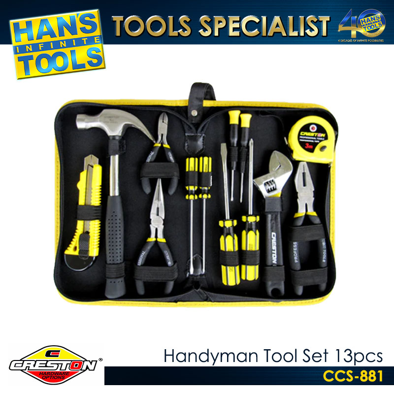 The Creston Handyman Tool Set – 13 pcs is a comprehensive toolkit designed to provide essential tools for home repairs, DIY projects, and professional tasks. Crafted from high-quality, durable materials, each tool ensures long-lasting performance and reliable functionality. The set includes a carefully selected assortment of hand tools suitable for a wide range of applications, from tightening and loosening fasteners to measuring and cutting tasks. Compactly organized in a convenient storage case, the set allows easy access, portability, and secure storage of all 13 pieces. Ideal for homeowners, hobbyists, and professionals, the Creston Handyman Tool Set enhances efficiency and preparedness for everyday tasks.