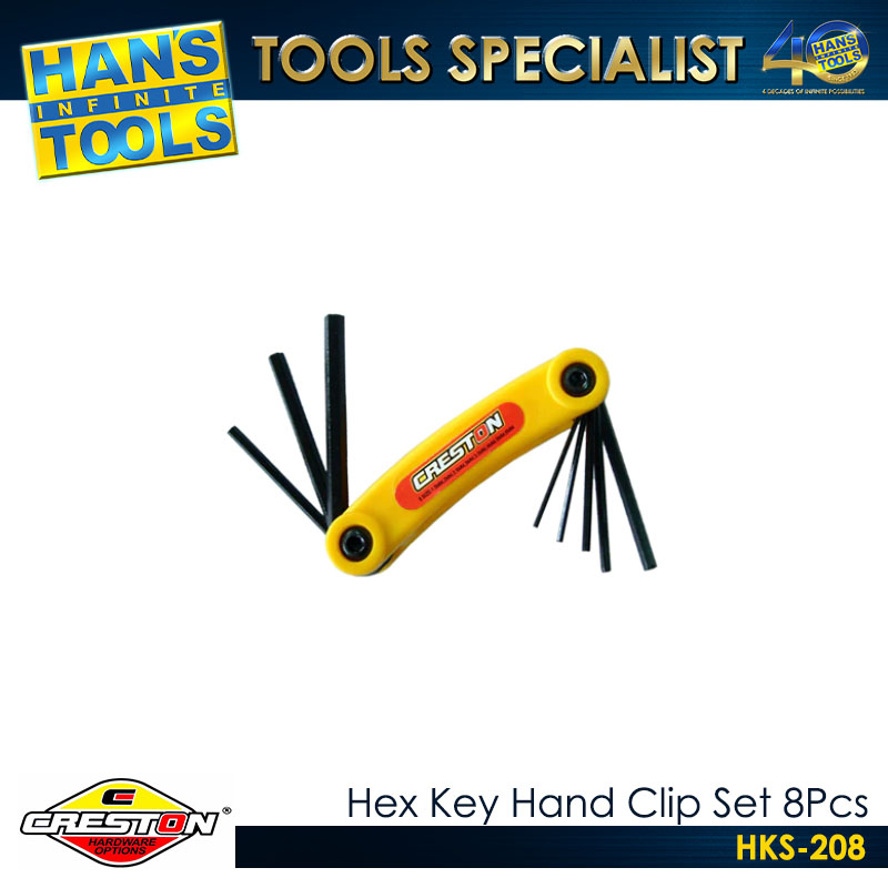 The HKS-208 features a “hand clip” or “jackknife” style design where the individual hex keys fold out from a central metal housing. Built with high-carbon steel and a black oxidized finish, this tool is ideal for mechanical repairs, bicycle maintenance, furniture assembly, and electronics.