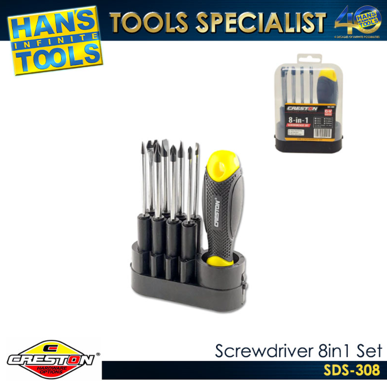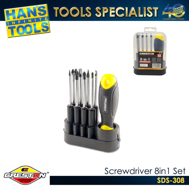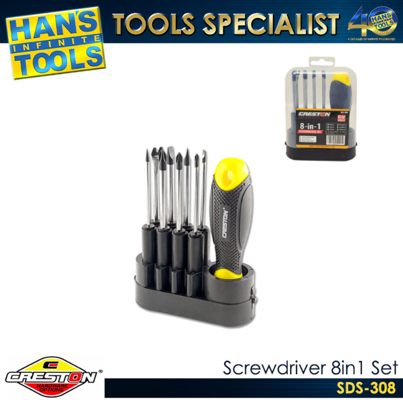 The Creston SDS-308 Screwdriver 8in1 Set is a versatile tool designed to handle a variety of fastening and repair tasks. It features eight interchangeable screwdriver functions in one compact and convenient unit. Constructed from high-quality materials, the components are built to ensure durability and consistent performance. The ergonomic handle provides a secure and comfortable grip for enhanced control during operation. Ideal for professional technicians and home users, this set offers practicality and efficiency in a single multi-purpose tool.