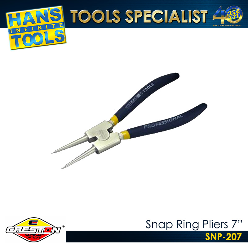 The Creston SNP-207 is a professional-grade 7-inch Internal Straight Snap Ring Plier designed for the precise installation and removal of circlips. Built for durability and ease of use, it is an essential tool for automotive repair, machinery maintenance, and DIY mechanical projects.