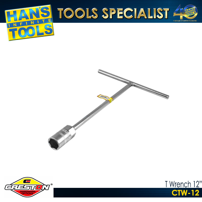 The Creston T‑Wrench is a hand tool designed with a “T-shaped handle” that provides extra leverage and better grip when tightening or loosening nuts, bolts, or spark plugs. The T-handle design allows the user to apply torque easily while maintaining control, making it useful for automotive repair, machinery maintenance, and general mechanical work.