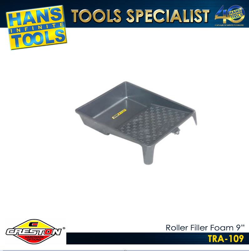 The Creston TRA-109 is a 9-inch professional-grade paint tray molded from thick, high-impact polypropylene. It features a deep-well reservoir and a steep, textured loading ramp. It is specifically built to stay stable on ladders or uneven floors, preventing the “twist and spill” common with cheaper plastic trays.