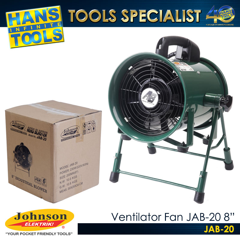 Johnson Elektrik JAB-20 Ventilator Fan 8″ Power: 162W / 220V / 60Hz Speed: 3394 rpm Wind Pressure: 260pa Flexible Hose are sold separately