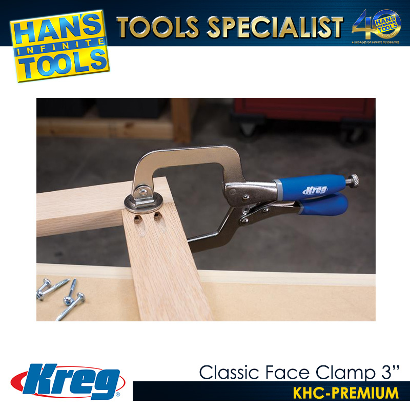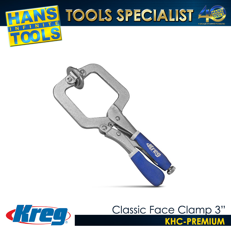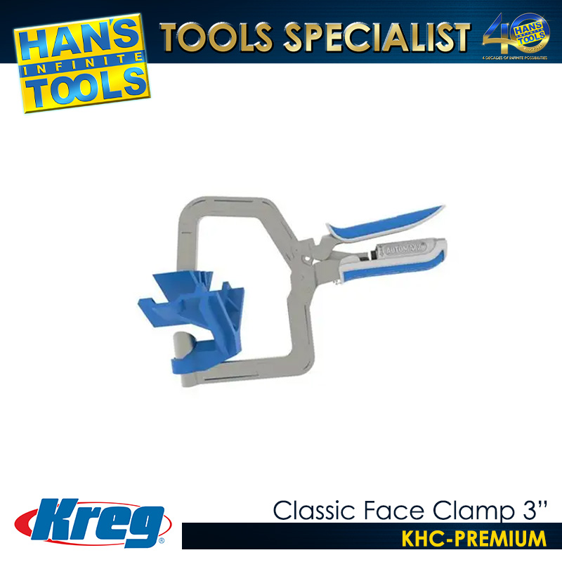 - A Great Clamp for Kreg Joinery and More This Classic Face Clamp offers increased reach and clamping capacity. Features a 3″ reach and clamps materials up to 2 3/4″ thick.