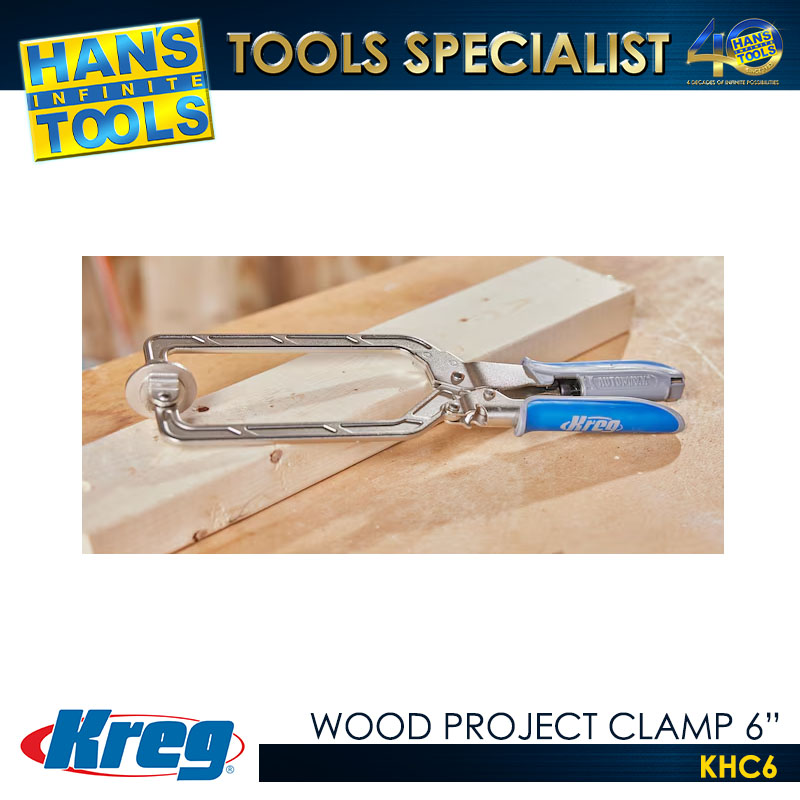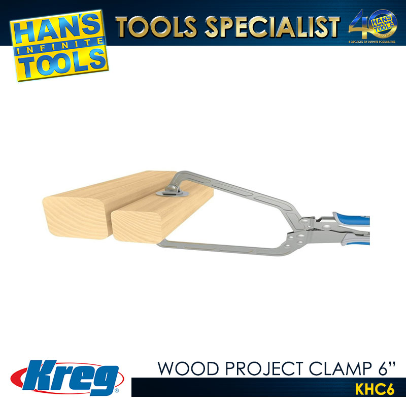 - Wood Project Clamps are perfect for Kreg Joinery, project assembly, general clamping, and more. Available in two sizes (6″ reach and 3″ reach) these versatile wood clamps have large clamp faces that distribute clamping force evenly and won’t mar delicate surfaces. They are compatible with the Kreg Pocket-Hole Jig R3’s Clamp Pad Adapter, 300-Series Pocket-Hole Jigs and with the Kreg Pocket-Hole Portable Base.
