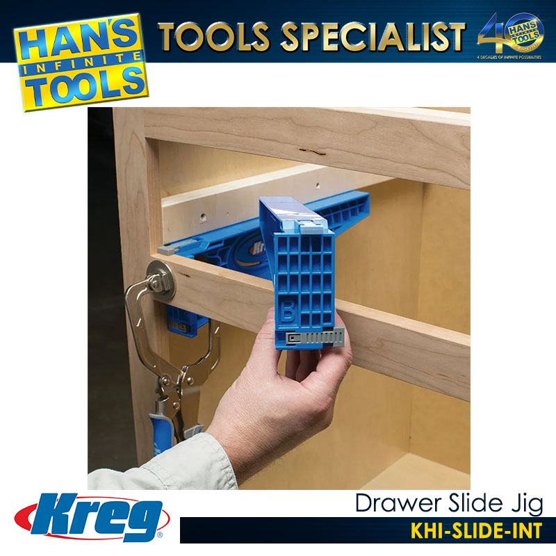 The Drawer Slide Jig takes the guesswork out of installing drawer slides. This easy-to use jig holds slides in position as you drill mounting holes in the cabinet, and it supports drawer boxes while mounting slides to the drawer. Plus, the Jig works with ball-bearing, epoxy-coated, and undermount slides for perfect positioning every time.