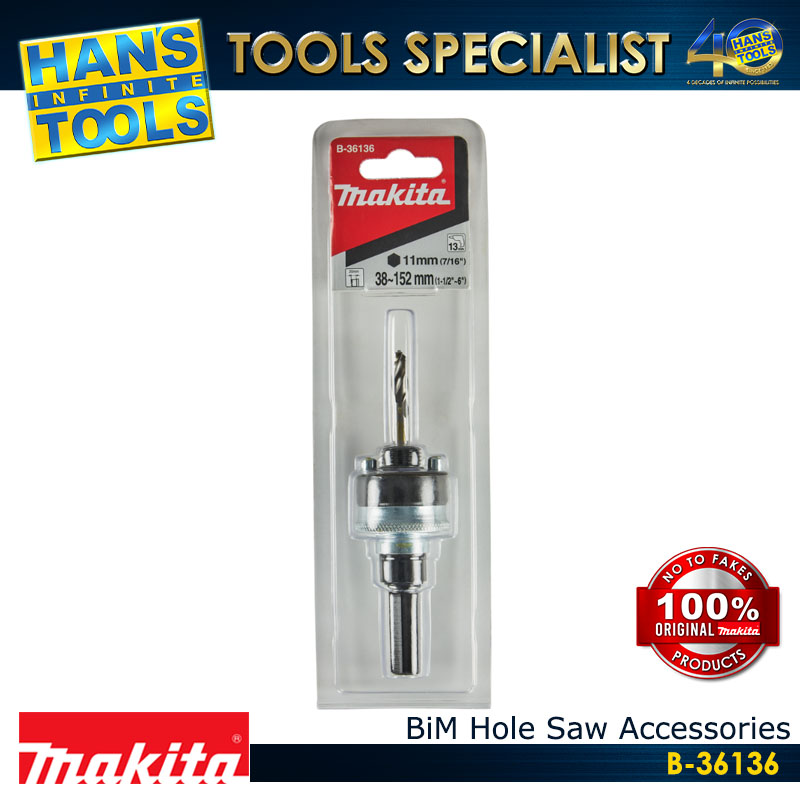 The Makita B‑36136 BIM Hole Saw Accessory is an arbor adapter designed for Bi‑Metal (BiM) hole saws, providing stability and precision when drilling larger diameter holes. It is part of Makita’s professional accessory line, ensuring compatibility with a wide range of hole saw sizes for wood, metal, and plastics.