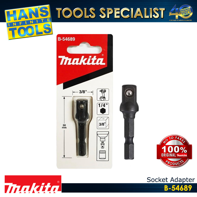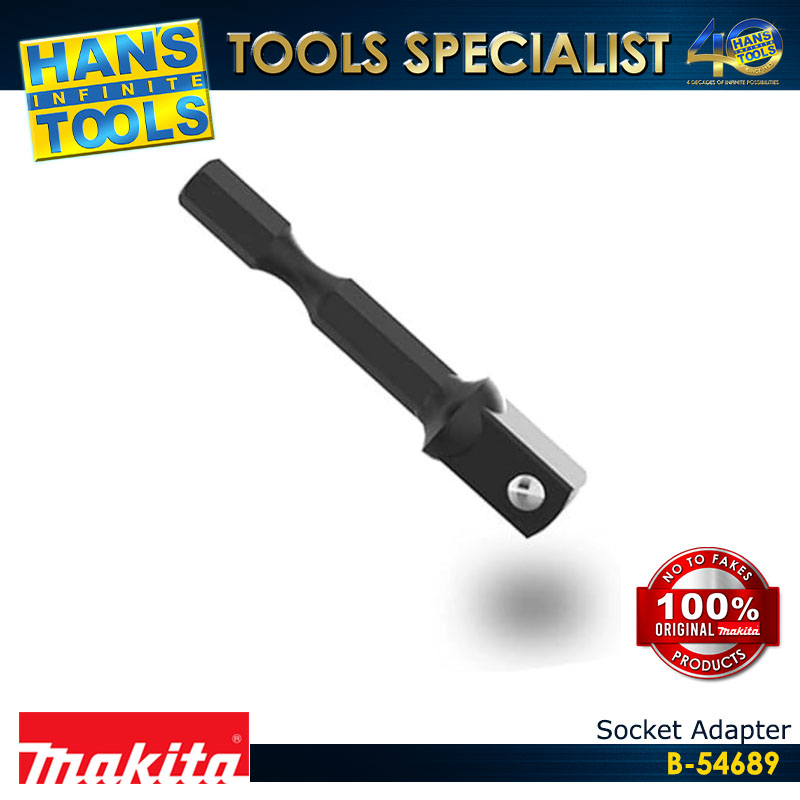 The Makita B‑54689 Socket Adapter is a fastening accessory designed to convert between different drive sizes, allowing impact drivers or drills with a 1/4″ hex shank to use sockets with square drives. It’s impact‑rated, making it suitable for high‑torque applications in automotive, mechanical, and construction work.