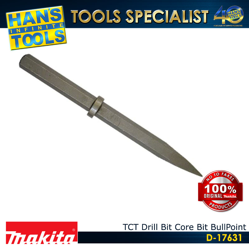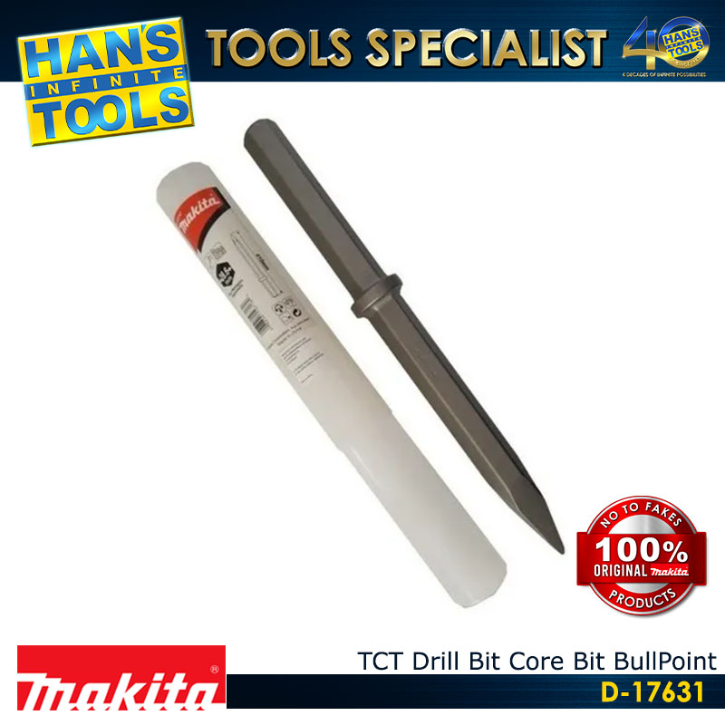 The Makita D‑17631 TCT Drill Bit Bullpoint is a demolition accessory designed for rotary hammers, optimized for breaking and chipping concrete, stone, and masonry. Unlike standard drill bits, this tool uses a Tungsten Carbide Tipped (TCT) bullpoint head to deliver concentrated impact force, making it ideal for controlled demolition and heavy construction tasks.