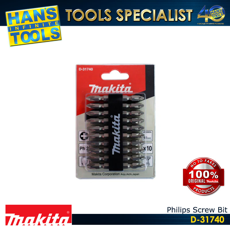 The Makita D‑31740 Philips Screw Bit is a PH2, 65 mm double‑ended magnetic screwdriver bit designed for use with drills and impact drivers. It’s part of Makita’s standard fastening accessory line, offering durability and convenience for general construction and installation tasks.