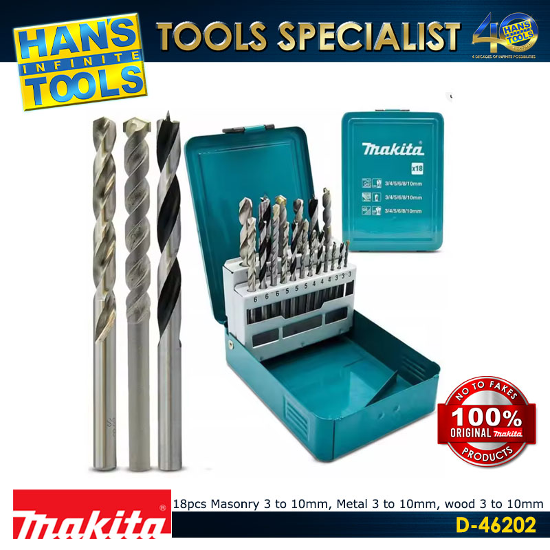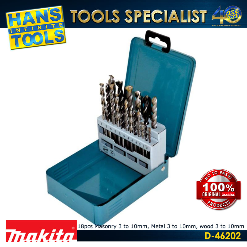 HANS INFINITE TOOLS > Products > Makita D-46202 10pcs Masonry 3 to 10mm, Metal 3 to 10mm, Wood 3 to 10mm