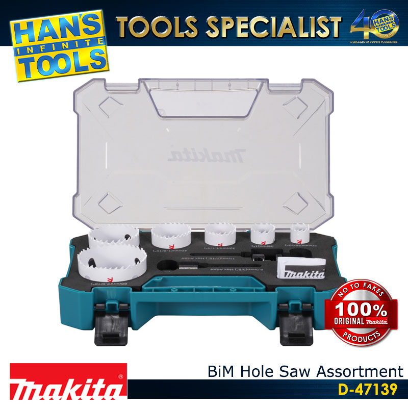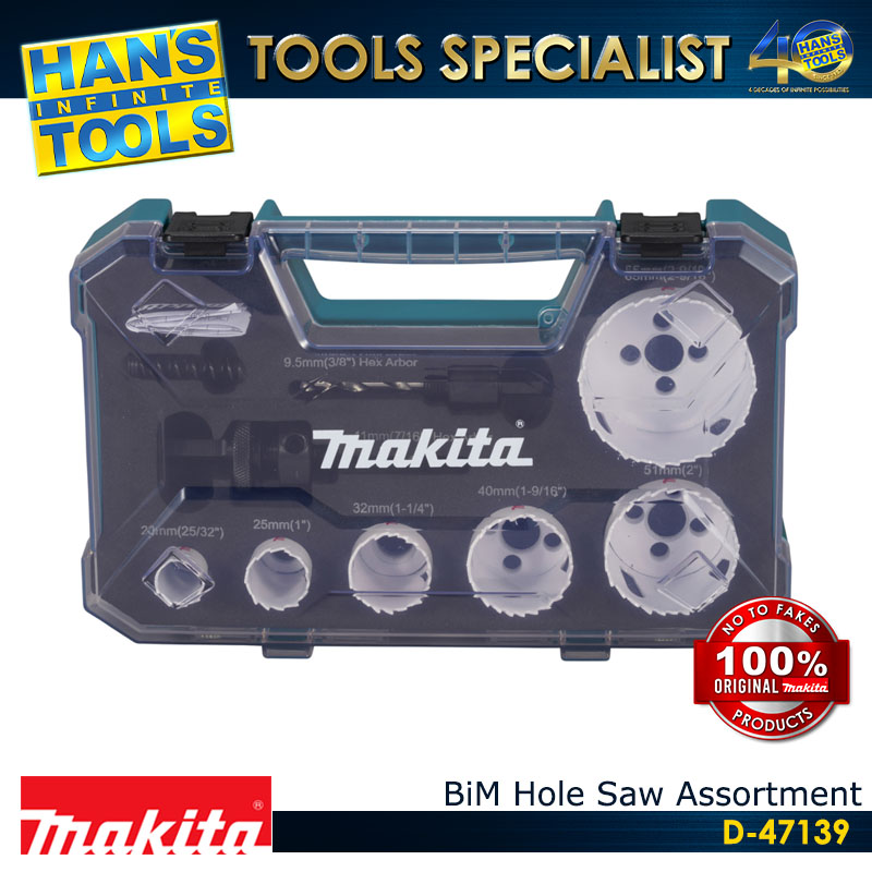 The Makita D‑47139 BIM Hole Saw Assortment is a professional kit containing a wide range of Bi‑Metal (BiM) hole saws with arbor accessories, designed for versatile cutting in wood, metal, and plastics. Compared to smaller assortments like the D‑47117 and D‑47123, this set is more comprehensive, offering a broader diameter range for electricians, carpenters, and metal fabricators who need flexibility on site.
