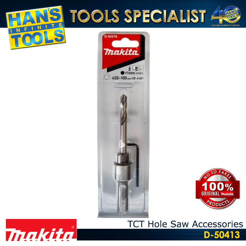The Makita D‑50413 TCT Hole Saw Accessory is a pilot drill designed to work with Makita Multi‑Purpose TCT Hole Saws, providing accurate centering and stability during drilling in masonry and concrete. While the D‑50429 and D‑50441 are Tungsten Carbide Tipped (TCT) pilot drills, the D‑50413 is typically supplied as a High‑Speed Steel (HSS) pilot drill, making it a standard option for general use.