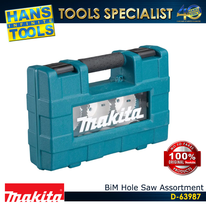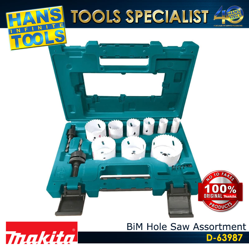 The Makita D‑63987 BIM Hole Saw Assortment is a professional kit containing multiple Bi‑Metal (BiM) hole saws with arbor accessories, designed for versatile cutting in wood, metal, and plastics. It is one of Makita’s larger assortment sets, offering a wide range of diameters for electricians, carpenters, plumbers, and metal fabricators who need flexibility on site.
