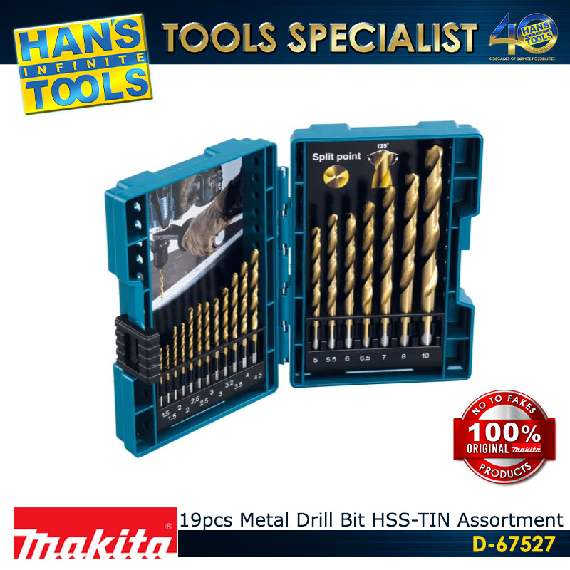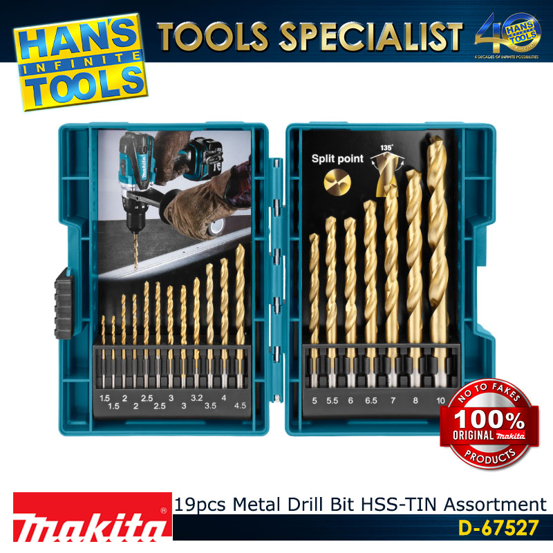 HANS INFINITE TOOLS > Products > Makita D-67527 19pcs Metal Drill Bit HSS-TIN Assortment 1.5 to 10mm