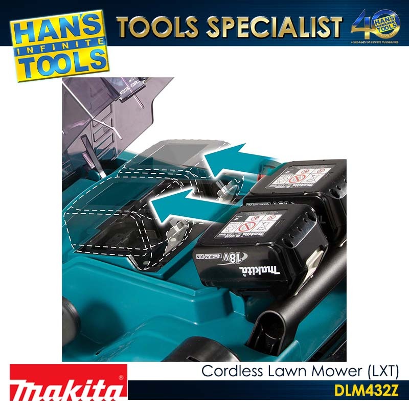 • Instant start-up; simply load two 18V LXT batteries and the lawn mower is ready to use