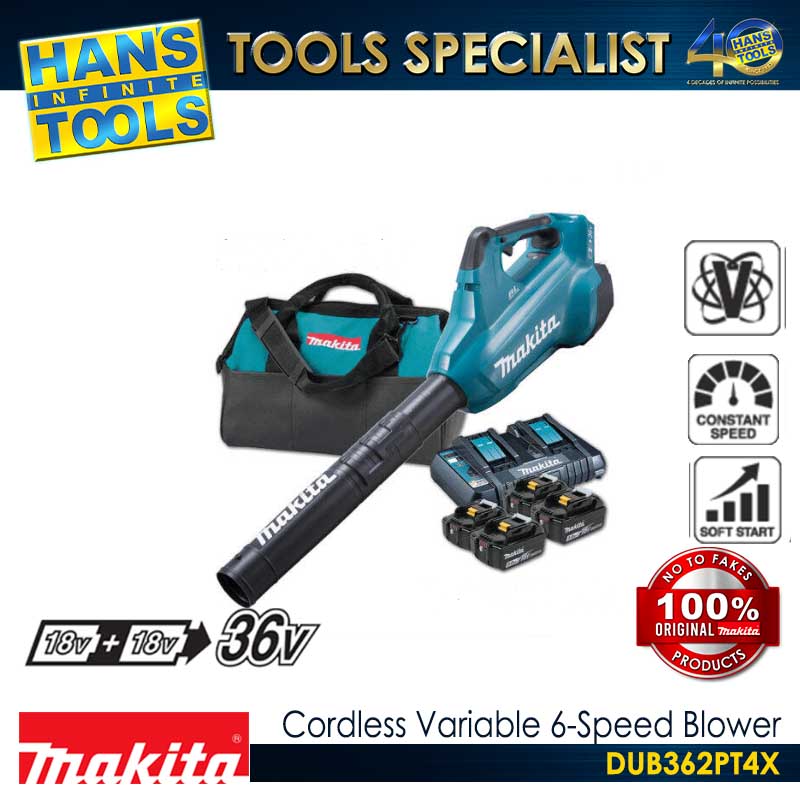 Compatible with Makita 18V LXT battery platform (PT4X model includes 4x 5.0Ah batteries and a dual-port rapid charger)