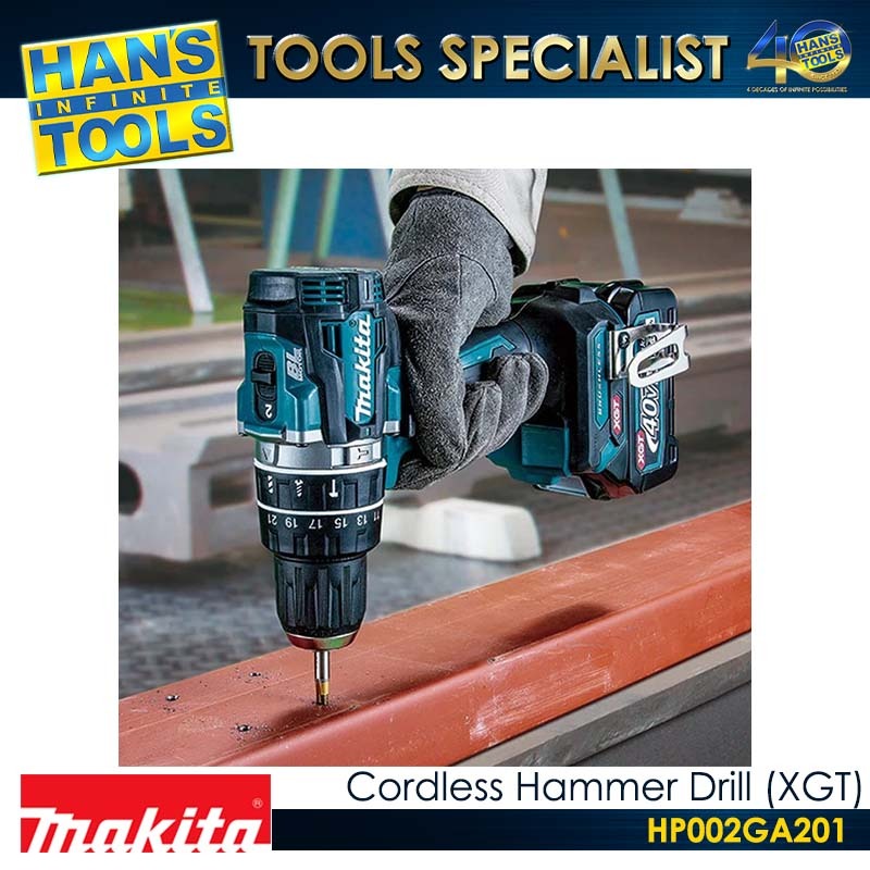 Makita HP002GA201 Cordless Hammer Drill (Brushless) 13mm (1/2″) 65Nm XGT 40Vmax [Kit Set]