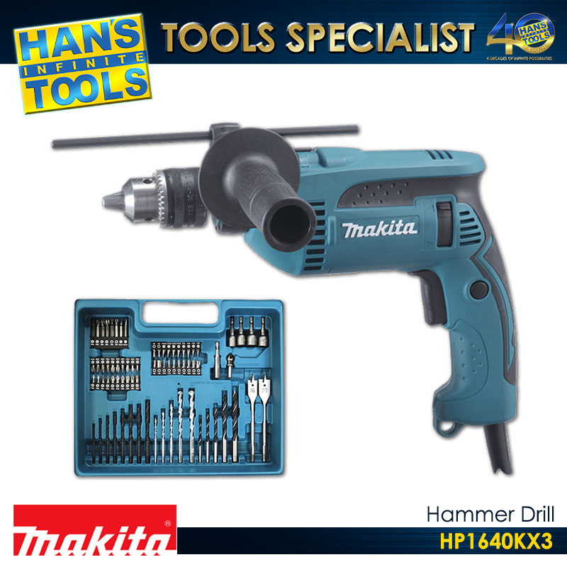 Makita HP1640KX3 Hammer Drill with Accessory Set 680W