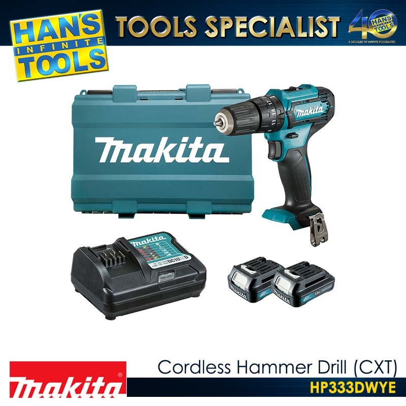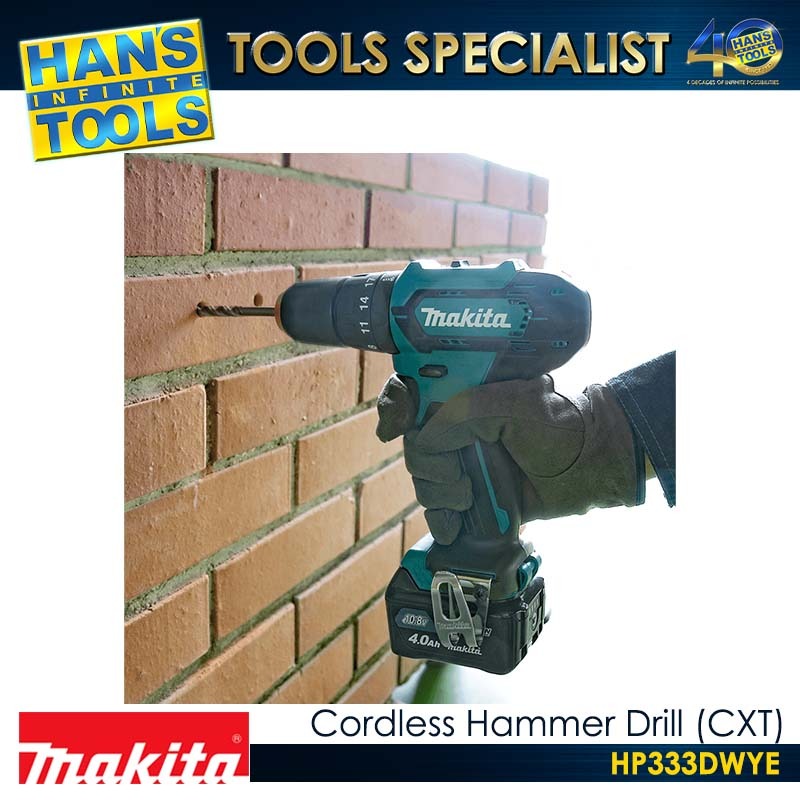 ![Makita HP333DWYE Cordless Hammer Drill 10mm (3/8") 28Nm CXT 12Vmax [Kit Set] - Image 2](https://www.hansinfinitetools.com/wp-content/uploads/2025/08/HP333DWYE-2.jpg)