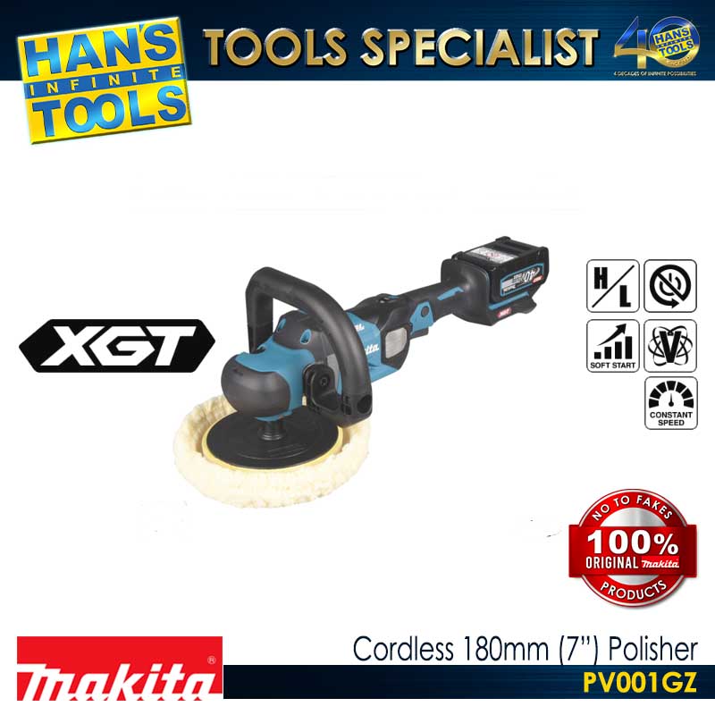 40Vmax XGT Brushless 180mm Polisher designed to provide corded-equivalent power for professional automotive detailing, stone polishing, and marine applications.