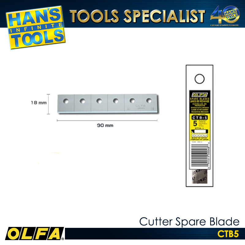 The OLFA CTB-5 Cutter Spare Blade is a high-quality replacement blade designed for precision cutting in craft, hobby, and general-purpose applications. It is made from premium carbon tool steel to ensure excellent sharpness and long-lasting durability. The blade is suitable for cutting paper, cardboard, plastic, and other lightweight materials with clean and accurate results. Its design allows for easy installation and efficient replacement, maintaining consistent cutting performance. The CTB-5 pack contains five blades, providing a practical and convenient solution for frequent use.