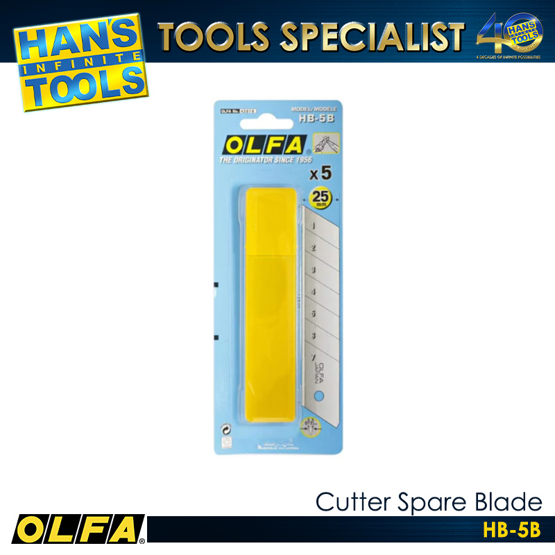 The OLFA HB-5B Cutter Spare Blade is a high-quality replacement blade designed for heavy-duty cutting applications. It is manufactured from premium carbon tool steel to provide superior sharpness and long-lasting edge retention. The snap-off blade design allows users to maintain optimal cutting performance by removing dull segments easily. It is suitable for cutting thick materials such as cardboard, rubber, and plastic with precision and efficiency. Compatible with heavy-duty OLFA cutters, the OLFA HB-5B Cutter Spare Blade ensures reliable and consistent performance in industrial and professional environments.