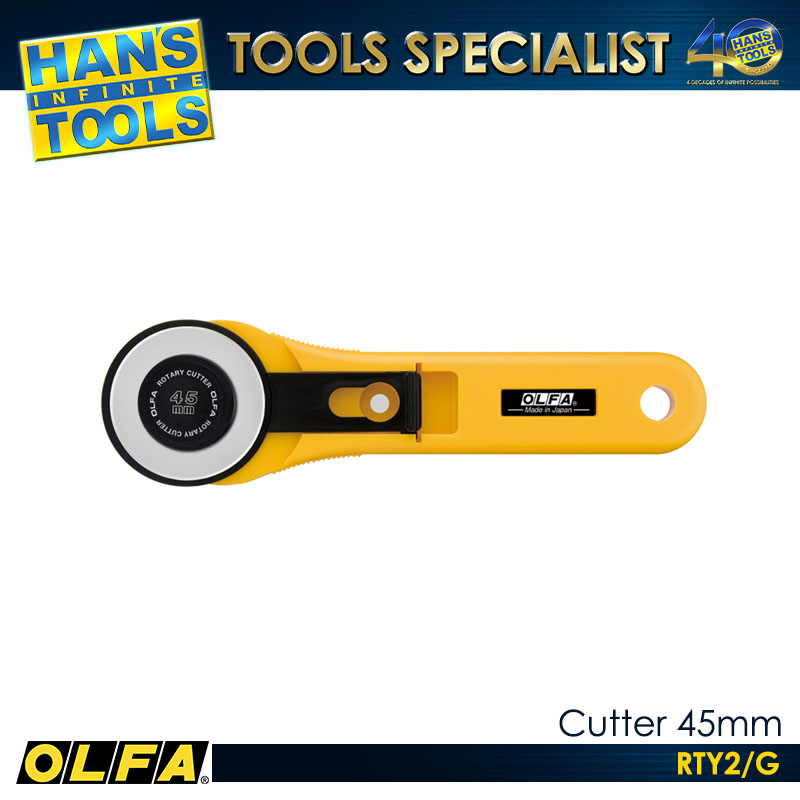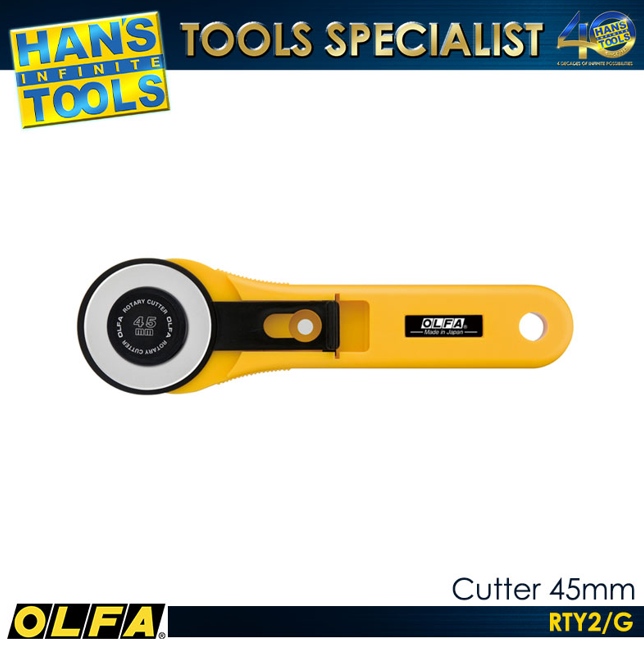 The OLFA RTY2/G 45mm Cutter is a precision rotary cutting tool designed for professional and general-purpose applications. It features a durable 45mm blade made from high-quality tool steel, ensuring long-lasting sharpness and reliable performance. The cutter is ideal for cutting fabric, paper, vinyl, and other medium-weight materials with clean and accurate results. Its ergonomic design provides a comfortable grip and precise control, reducing fatigue during extended use. The RTY2/G is suitable for craft, sewing, and industrial applications where precision and efficiency are essential.