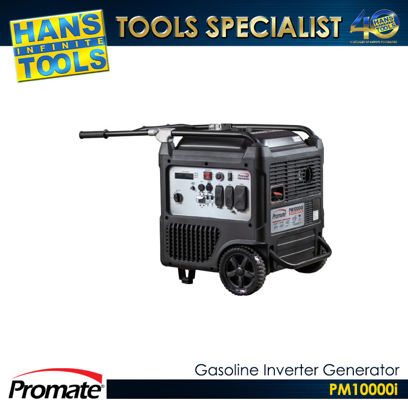 The Promate PM10000i is a premium gasoline inverter generator with a rated output of 8200W and a surge capacity of 10,000W. It combines high-capacity performance with inverter technology, ensuring clean and stable electricity for sensitive electronics while powering heavy household or business appliances.
