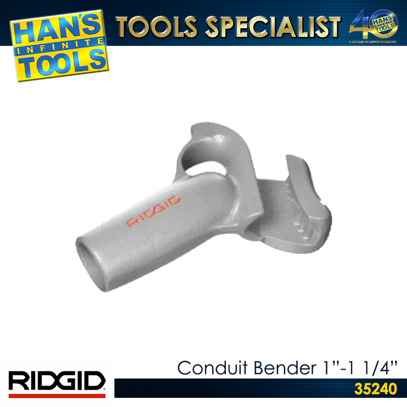 The RIDGID 35240 Conduit Bender is a heavy-duty tool specifically designed for bending large-diameter rigid and heavy-wall conduit. Built with hardened teeth, it provides a secure, slip-resistant grip during operation for improved control and accuracy. Its extra-long supporting socket helps minimize handle breakage, ensuring durability even under demanding job site conditions. The bender also features a radius notch that protects conduit threads while forming smooth bends. Ideal for professional electricians and contractors, it delivers reliable performance when working with 1″ to 1-1/4″ conduit sizes.