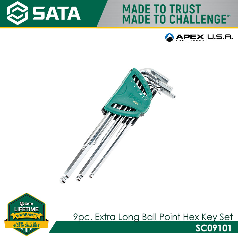 SATA SC09101 9Pc. Extra Long Ball Point Hex Key Set