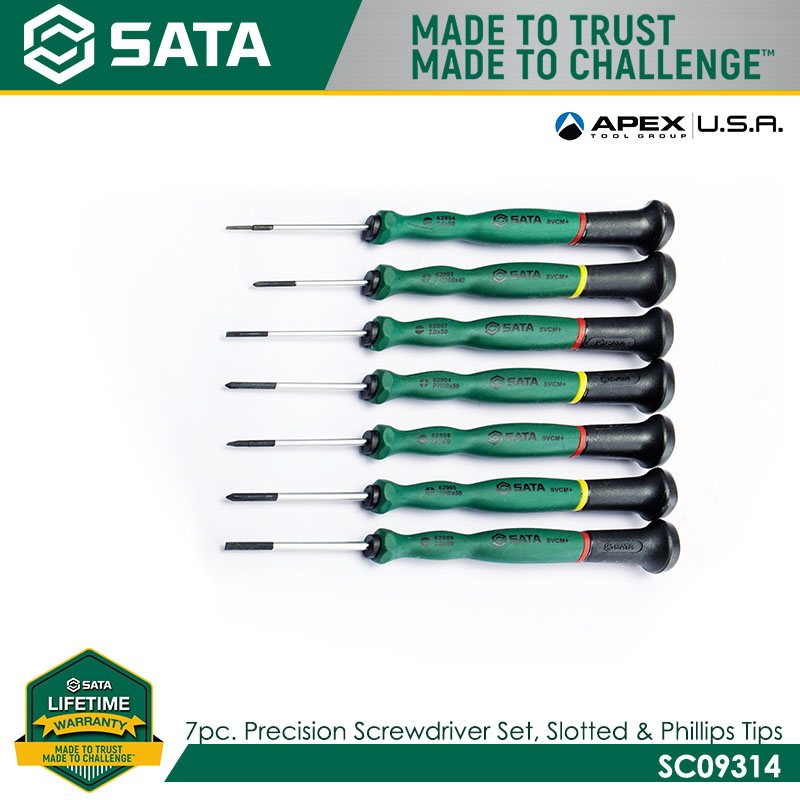 SATA SC09314 7pc Precision Screwdriver Set, Slotted/ Phillips Tips