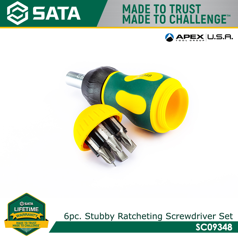 SATA SC09348 6Pc. Ratcheting Stubby Screwdriver Set