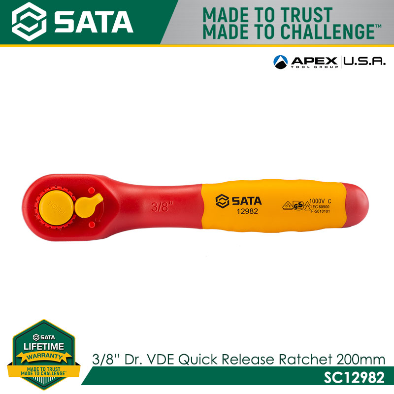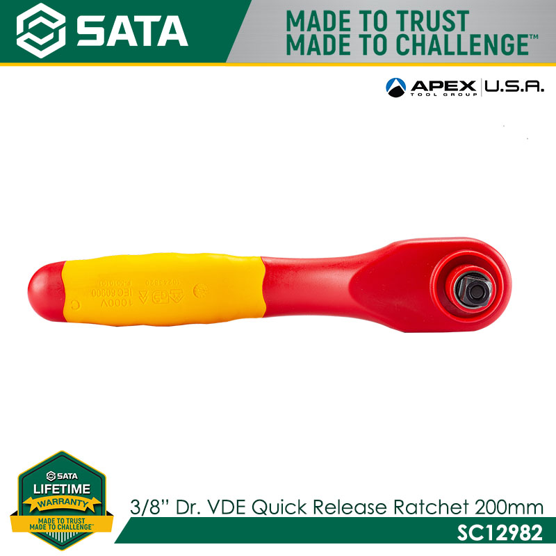 SATA SC12982 3/8″ Dr. VDE Quick Release Ratchet 200mm