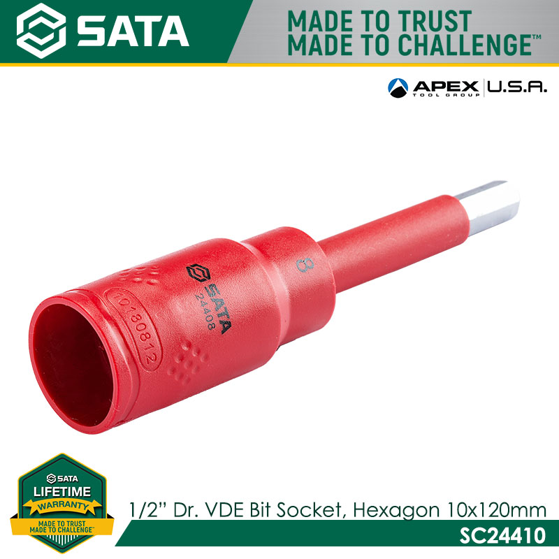 SATA SC24410 1/2″ Dr. VDE Bit Socket, Hexagon 10x120mm