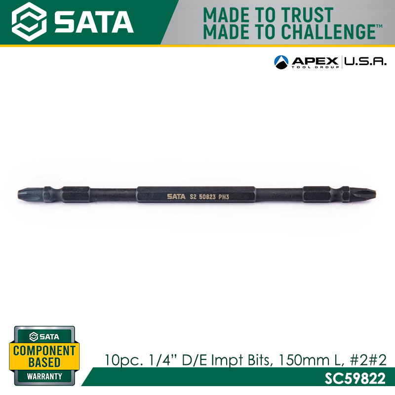 SATA SC59822 10pc. 1/4″ Hex Shank Double End Impact Bits 150mm