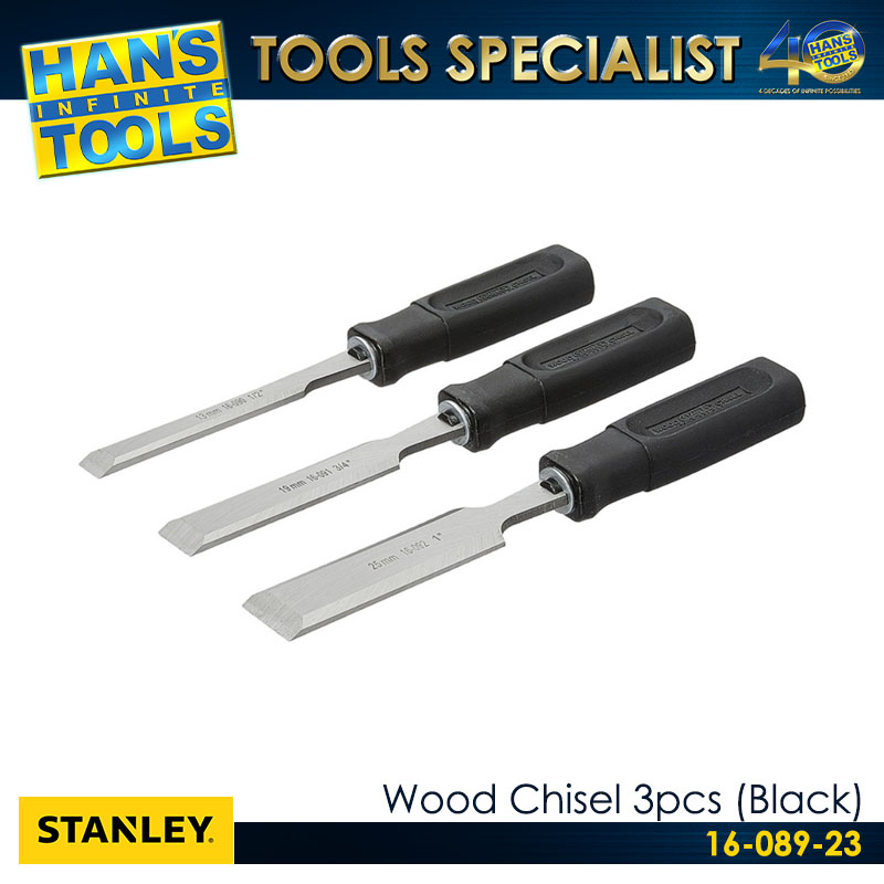 The Stanley 16-089-23 Wood Chisel Set 3pcs (Black) is a durable and precise tool set designed for carving, shaping, and trimming wood. Each chisel features a high-quality steel blade with a black finish, providing long-lasting sharpness and corrosion resistance. The ergonomic handles ensure a comfortable and secure grip, reducing hand fatigue during extended use. This set includes three essential sizes, offering versatility for various woodworking tasks. Ideal for carpentry, cabinetry, and DIY projects, the set delivers reliable performance and accurate results.