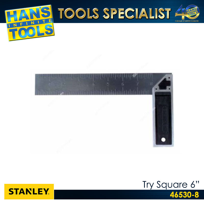 It features a heavy-duty, cast-metal handle (stock) and a permanently fixed stainless steel or tempered steel blade. The handle is purposely weighted so the tool can stand upright on its own, and the top of the handle is beveled for measuring 45circ$ miters.