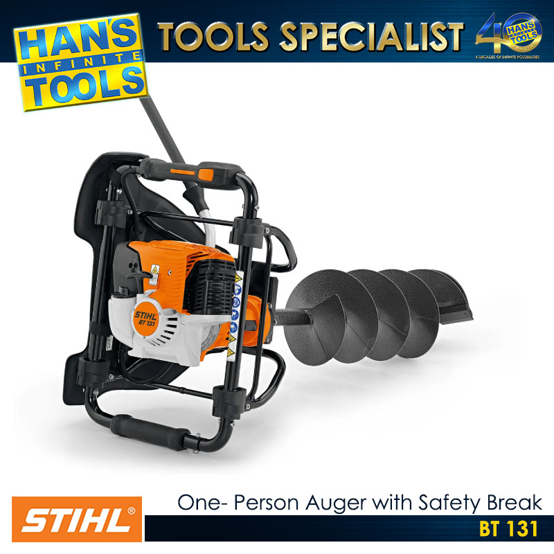 The STIHL BT 131 is a professional-grade one-person earth auger equipped with a safety brake, designed for demanding drilling tasks in soil. It’s the most powerful auger in STIHL’s lineup, built for durability, operator safety, and versatility.