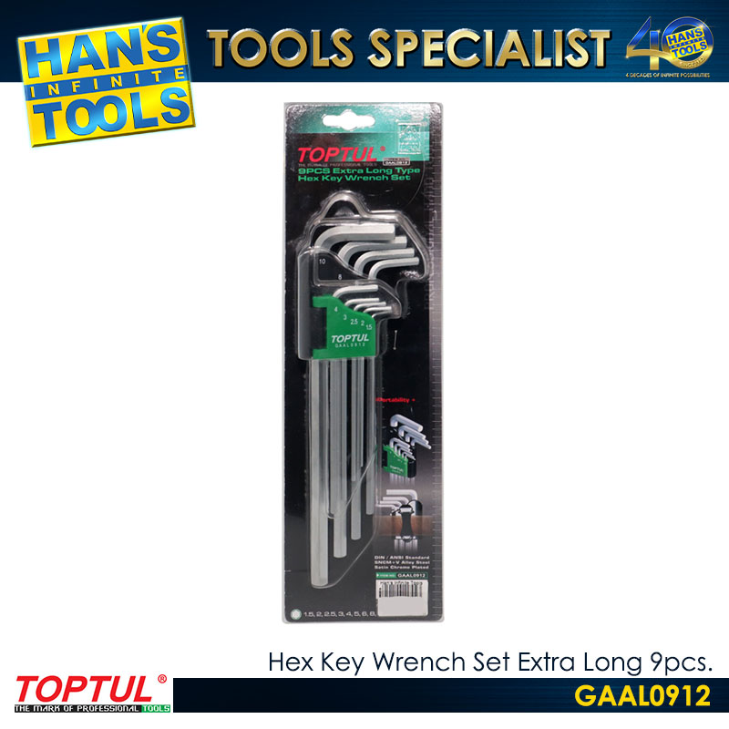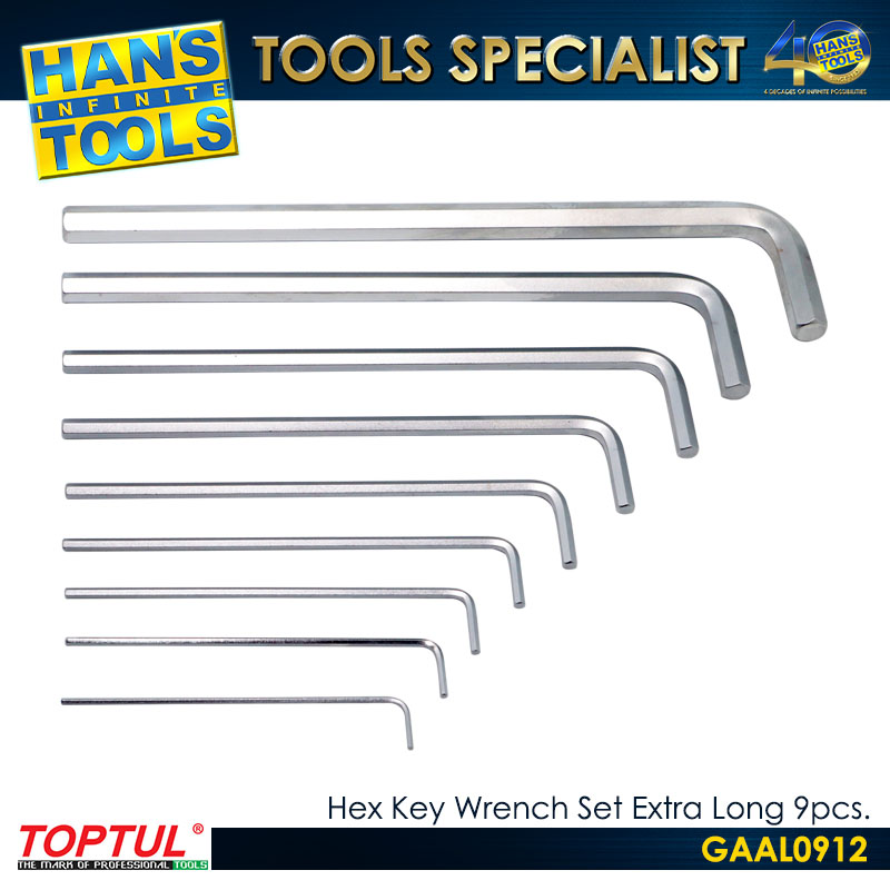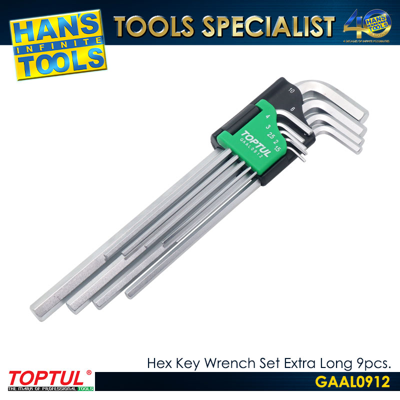 TOPTUL GAAL0912 Hex Key Wrench Set Extra Long 9pcs.