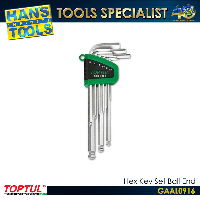 TOPTUL GAAL0916 Hex Key Set Ball End