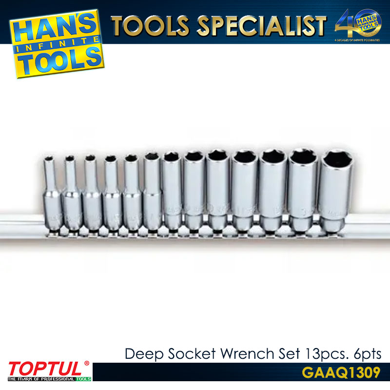 TOPTUL GAAQ1309 Deep Socket Wrench Set 13pcs, 6pts